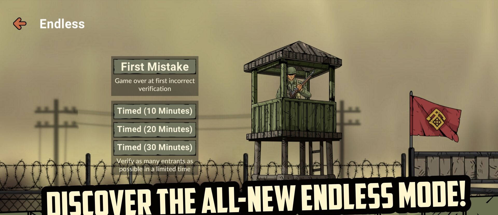 در این بازی، حالت Endless Mode نیز ارائه شده است که در آن مسافران به‌ صورت پیوسته وارد پاسگاه می‌شوند و بازیکن باید توانایی‌های خود در تشخیص موارد مشکوک را به چالش بکشد. این حالت به بازیکن این امکان را می‌دهد مهارت‌های خود را در مدیریت فشار زمان و تحلیل سریع اطلاعات افزایش دهند.