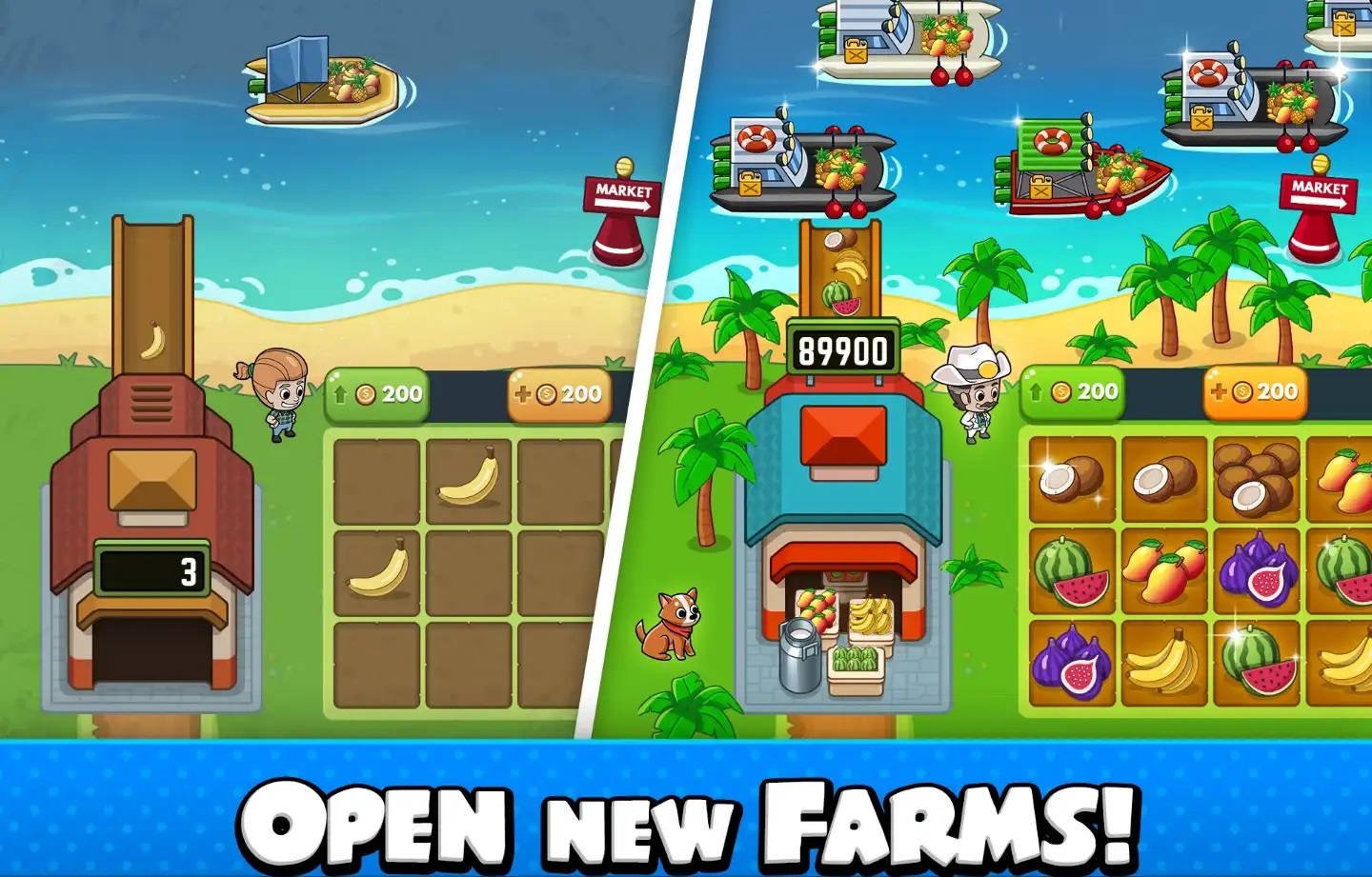 سیستم پیشرفت بازی کشاورز سرمایه دار – Idle Farm Tycoon بر اساس ترکیب و ارتقاء است: